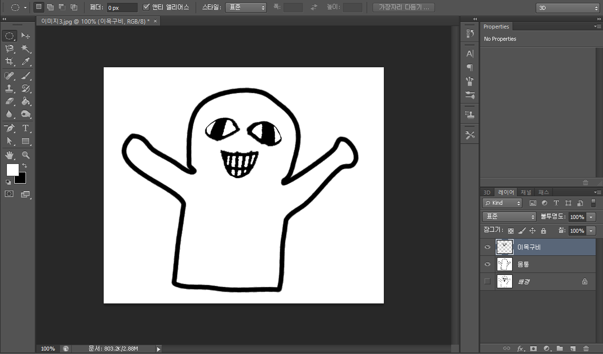 몸통 레이어에 이쁜 외곽선이 만들어졌다. 빈공간들을 흰색으로 채운다.