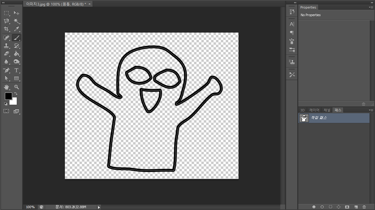 몸통 레이어를 다시 표시한다면, 위와 같이 작업 패스만 볼 수 있다.